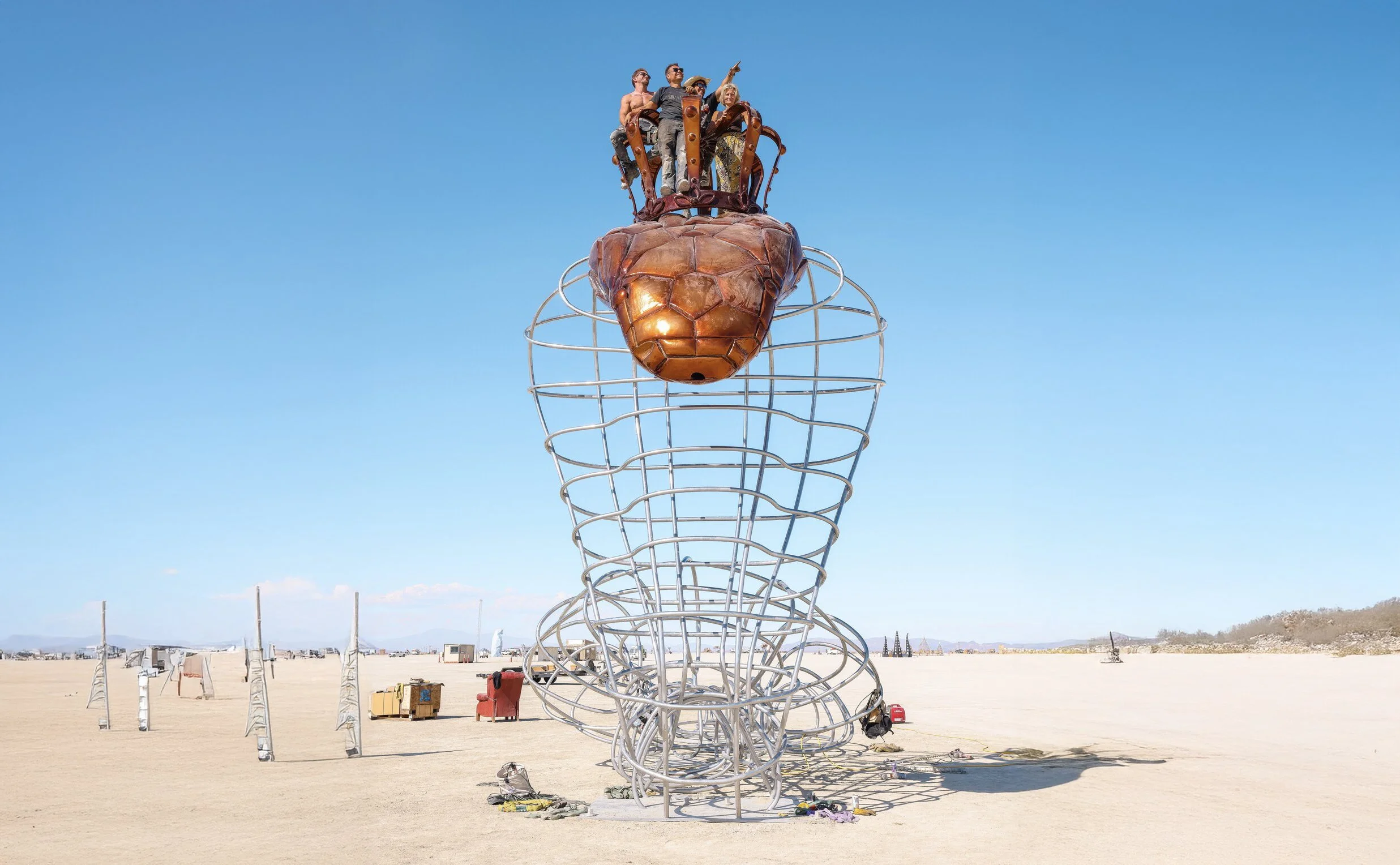 Ski is a Reno, Nevada-based fabricator and large-scale art creator known for bringing imaginative, structural artworks to life. He primarily works with metal, and specializes in large-scale art installations. Working out of the Generator community maker space, he blends hands-on fabrication skills with collaborative creativity, turning bold ideas into immersive sculptural experiences.